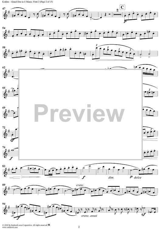 "Grand Duo in D Major, Op. 39, No. 1 - Flute 2" Sheet Music by Friedrich Kuhlau