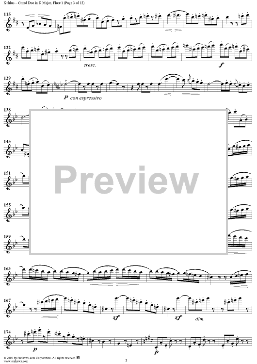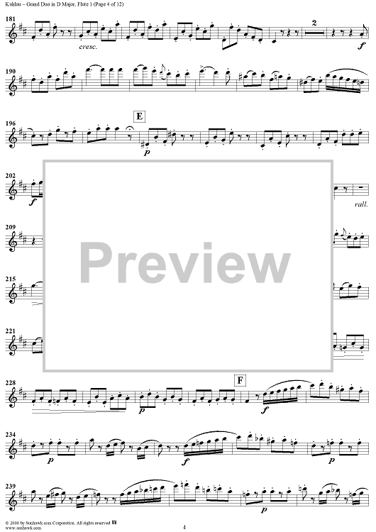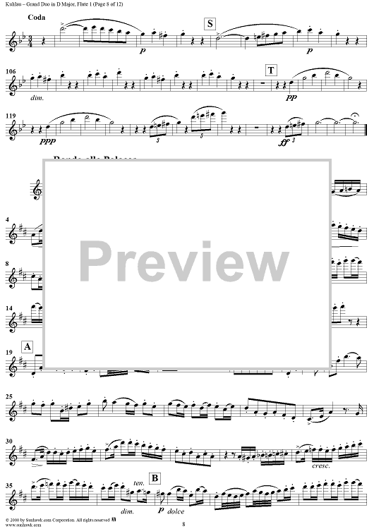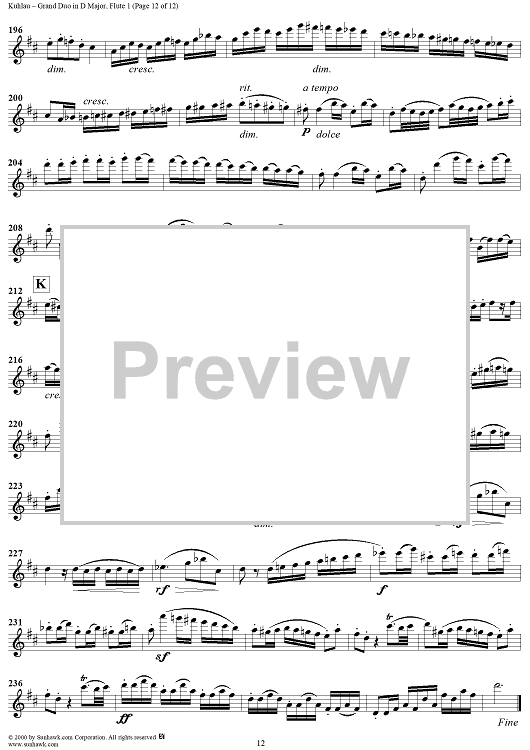 Digital Sheet Music for Grand Duo in D Major, Op. 39, No. 3 - Flute 1 by Friedrich Kuhlau scored for Two Flutes; id:235494
