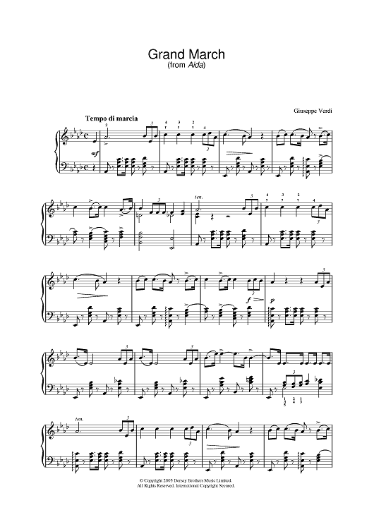 Digital Sheet Music for Grand March (from Aida) by Giuseppe Verdi scored for Piano; id:388077