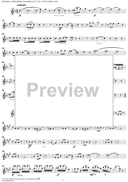 Digital Sheet Music for Grand Quatuor Concertante, Op. 53, No. 2 - Flute 3 by Joh. Wilhelm Gabrielsky scored for Four Flutes; id:268029