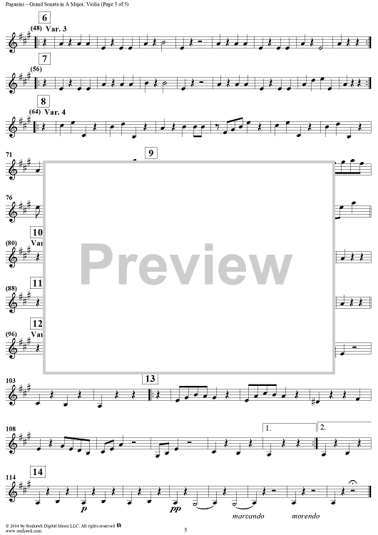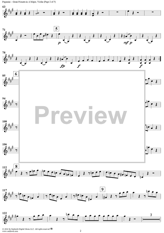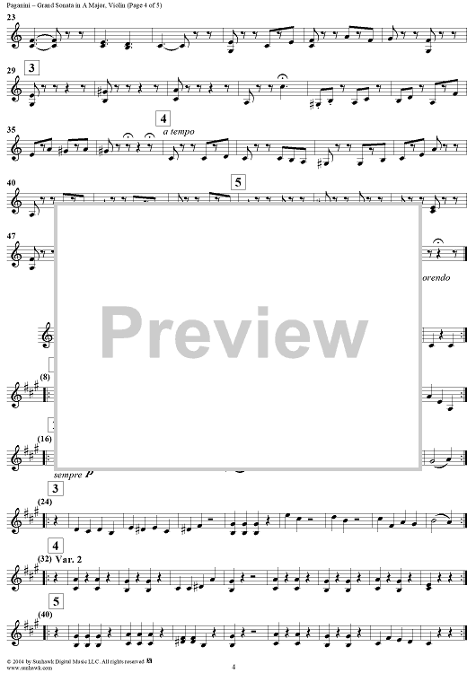 Digital Sheet Music for Grand sonata in A Major - Violin by Niccolò Paganini scored for Guitar/Violin/Piano; id:298047