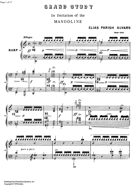 Digital Sheet Music for Grand Study in imitation of the Mandoline by , Elias Parish Alvars scored for Harp Solo; id:328807