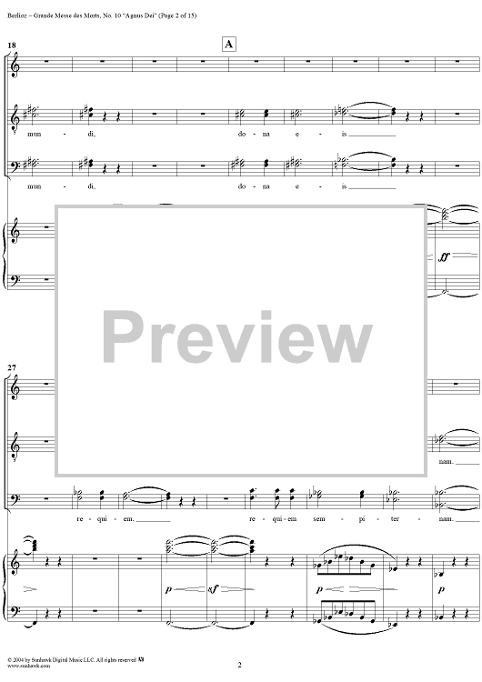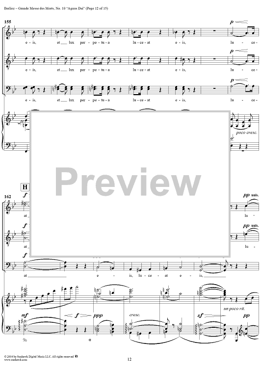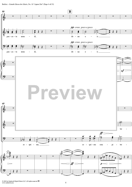 "Grande Messe des Morts (Requiem), No. 10: Agnus Dei" Sheet Music by Hector Berlioz