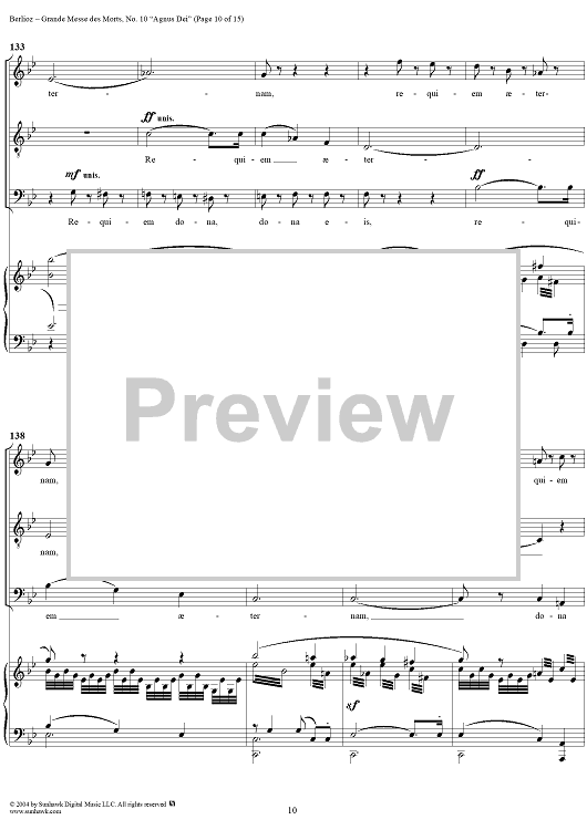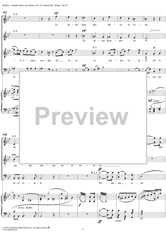 Digital Sheet Music for Grande Messe des Morts (Requiem), No. 10: Agnus Dei by Hector Berlioz scored for SSTTBB Choir and Piano; id:305110