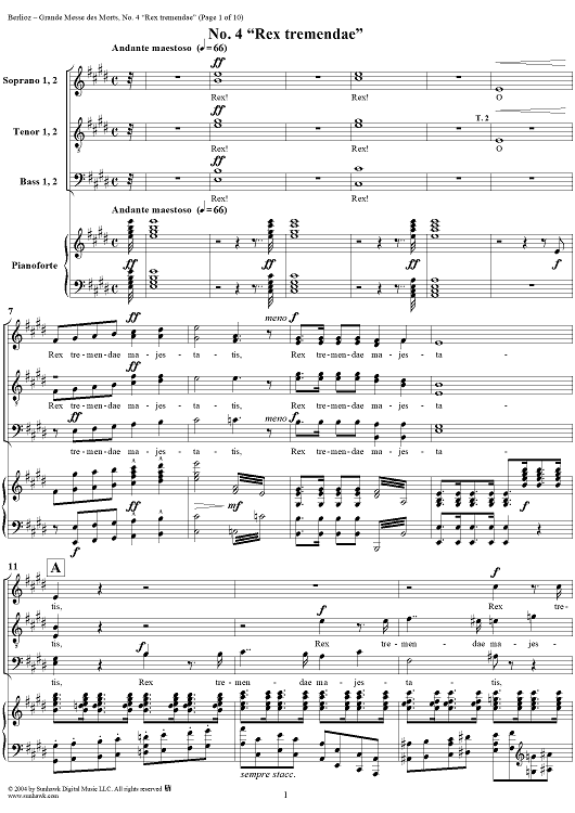 "Grande Messe des Morts (Requiem), No. 4: Rex tremendae" Sheet Music by Hector Berlioz