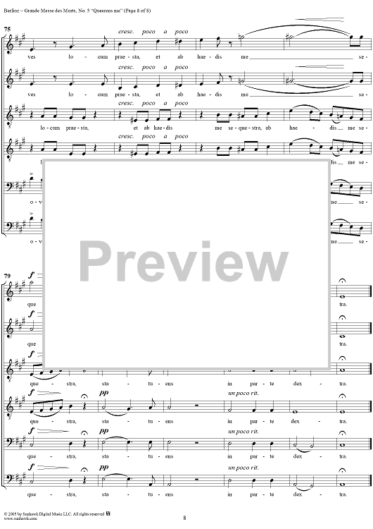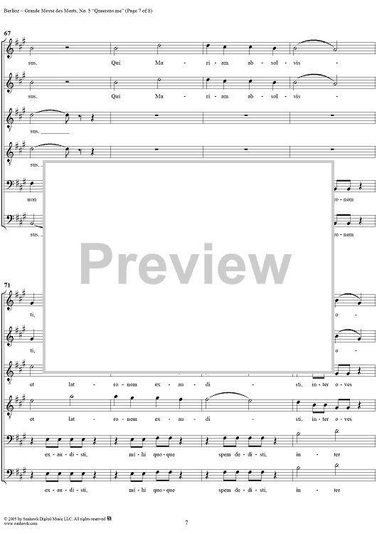 Digital Sheet Music for Grande Messe des Morts (Requiem), No. 5: Quaerens me by Hector Berlioz scored for SSTTBB Choir; id:305105