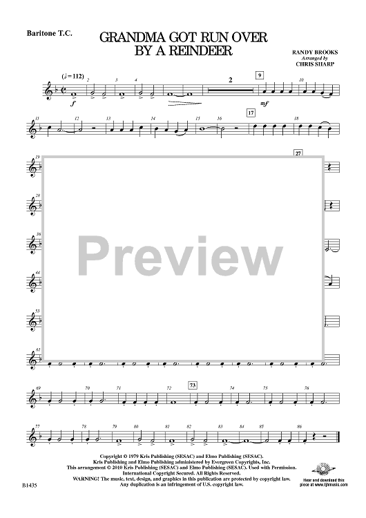 Digital Sheet Music for Grandma Got Run Over By A Reindeer - Baritone TC by Randy Brooks, Chris Sharp scored for Young Band; id:415353