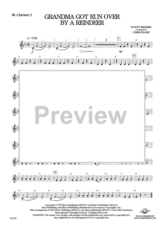 Digital Sheet Music for Grandma Got Run Over By A Reindeer - Bb Clarinet 2 by Randy Brooks, Chris Sharp scored for Young Band; id:415341