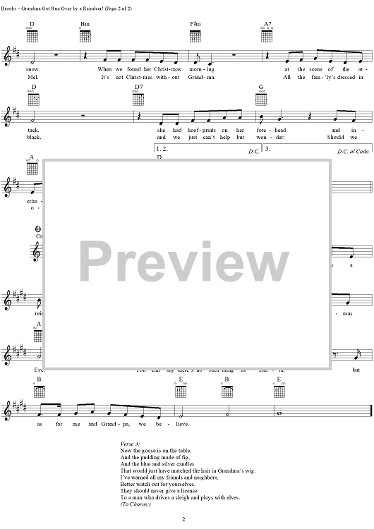 Digital Sheet Music for Grandma Got Run Over by a Reindeer by Randy Brooks scored for Lead Sheet; id:274532