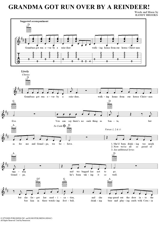 "Grandma Got Run Over by a Reindeer" Sheet Music by Randy Brooks