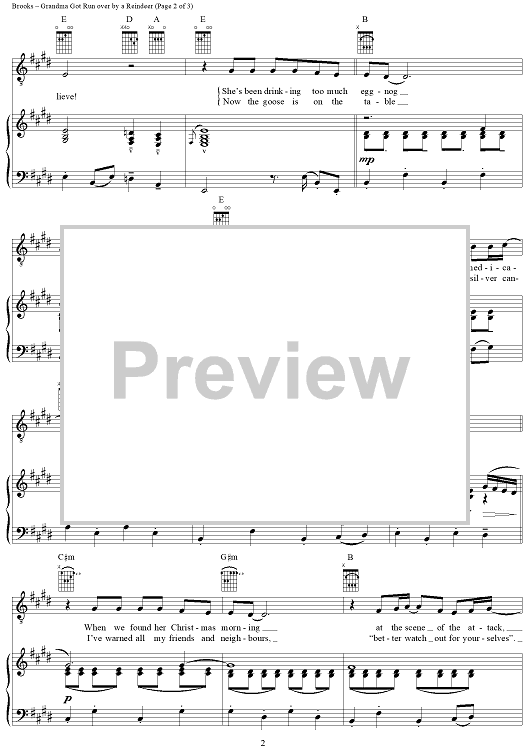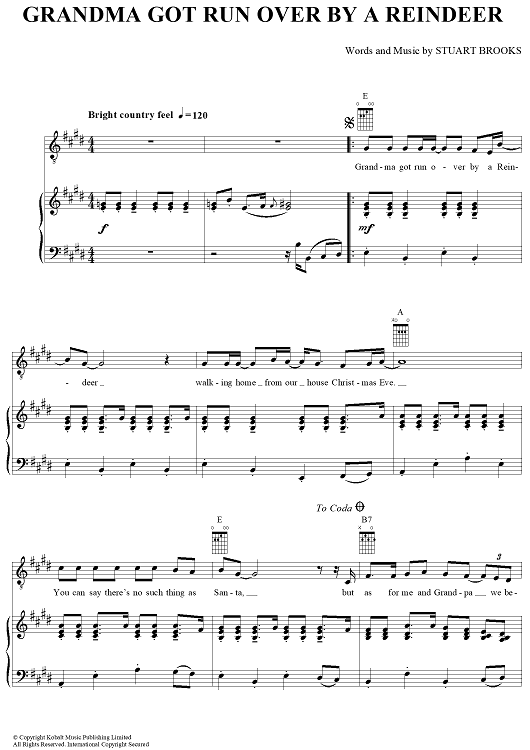 Digital Sheet Music for Grandma Got Run Over by a Reindeer by Stuart Brooks, Elmo and Patsy scored for Piano/Vocal/Chords; id:392775