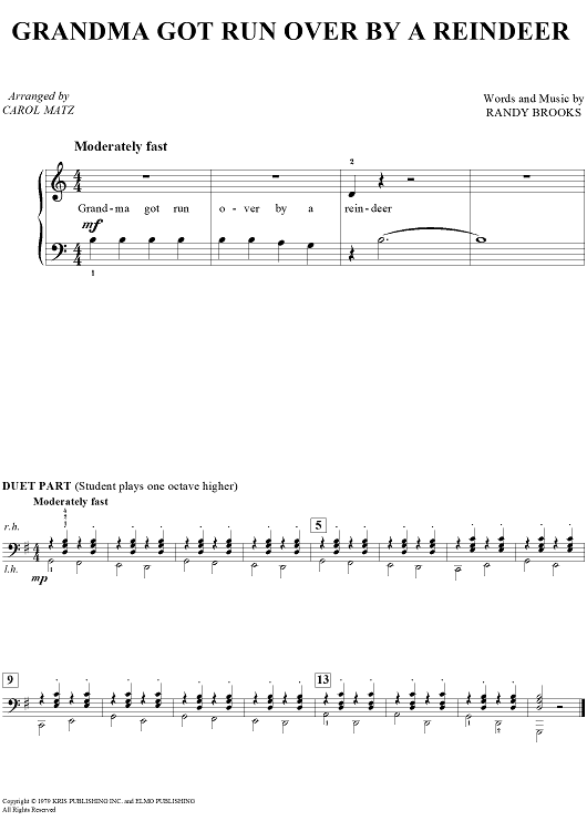 Digital Sheet Music for Grandma Got Run Over By A Reindeer by Randy Brooks, Carol Matz scored for Piano; id:453402