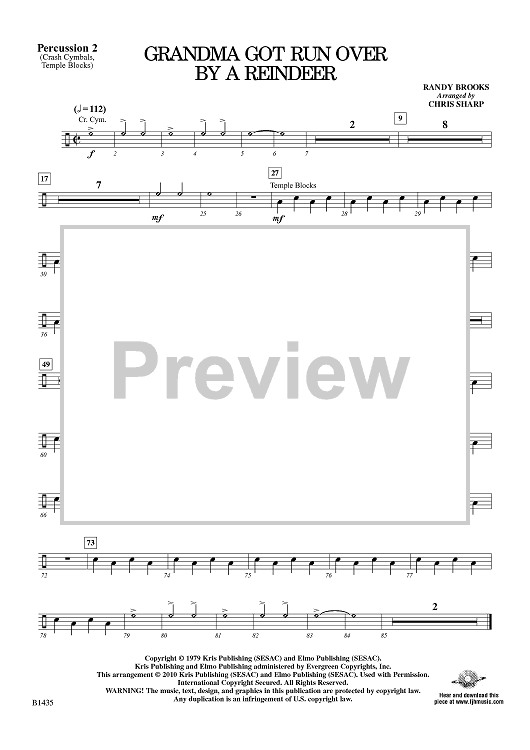 "Grandma Got Run Over By A Reindeer - Percussion 2" Sheet Music by Randy Brooks