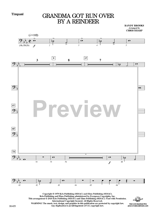 Digital Sheet Music for Grandma Got Run Over By A Reindeer - Timpani by Randy Brooks, Chris Sharp scored for Young Band; id:415355