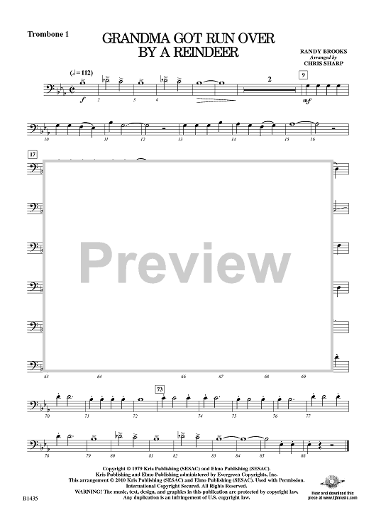 Digital Sheet Music for Grandma Got Run Over By A Reindeer - Trombone 1 by Randy Brooks, Chris Sharp scored for Young Band; id:415350