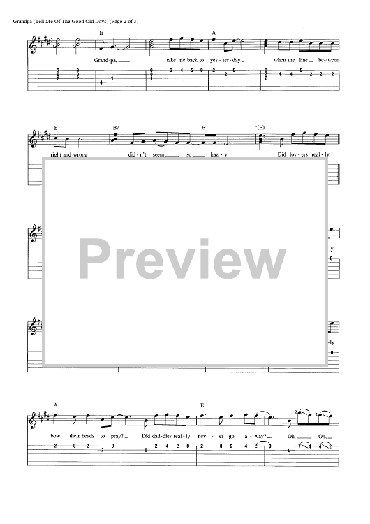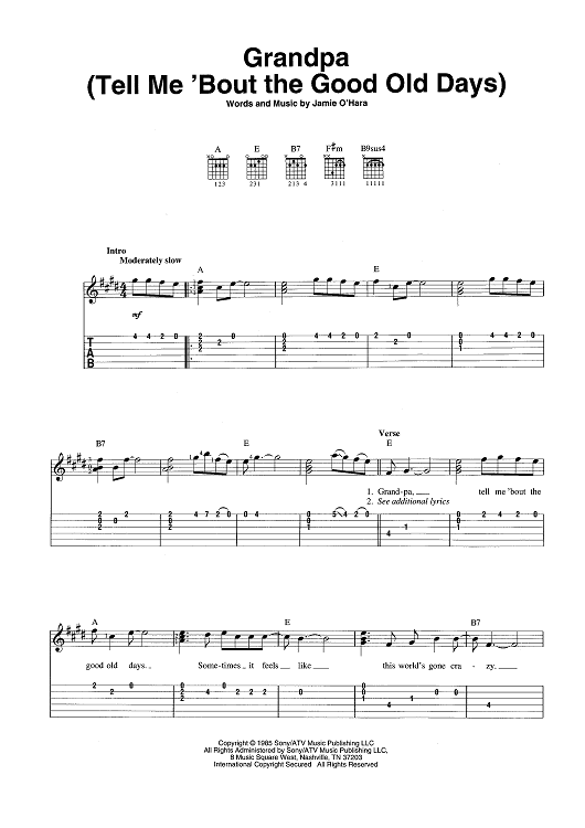 Digital Sheet Music for Grandpa (Tell Me 'Bout the Good Old Days) by The Judds, Jamie O'Hara scored for Easy Guitar Tab/Vocal/Chords; id:456775