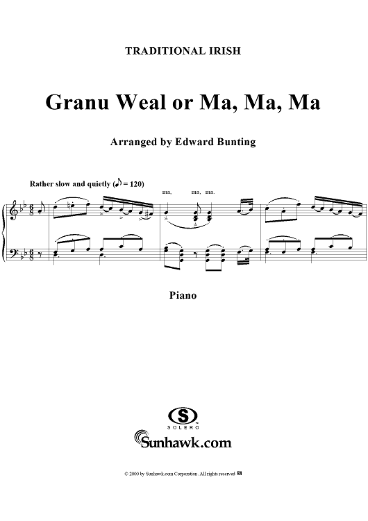Digital Sheet Music for Granu Weal or Ma, Ma, Ma by , Edward Bunting, Traditional scored for Piano Solo; id:234683