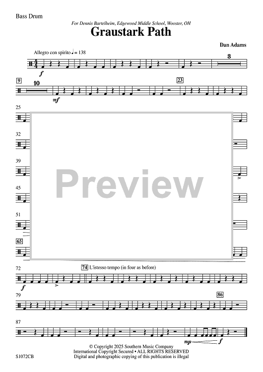 Digital Sheet Music for Graustark Path - Bass Drum by Dan Adams scored for Concert Band; id:508552