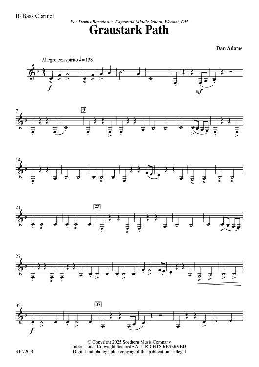 "Graustark Path - Bb Bass Clarinet" Sheet Music by Dan Adams