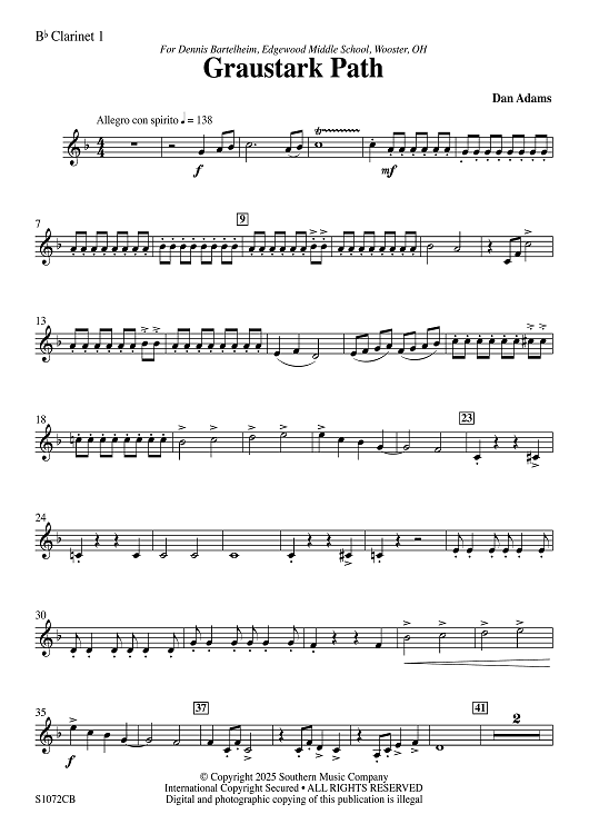 Digital Sheet Music for Graustark Path - Bb Clarinet 1 by Dan Adams scored for Concert Band; id:508535