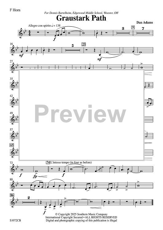 Digital Sheet Music for Graustark Path - F Horn by Dan Adams scored for Concert Band; id:508544