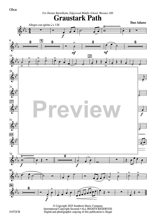 Digital Sheet Music for Graustark Path - Oboe by Dan Adams scored for Concert Band; id:508534