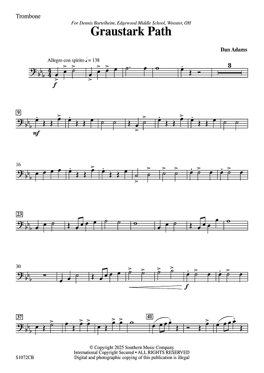 "Graustark Path - Trombone" Sheet Music by Dan Adams