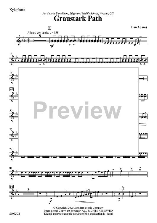 Digital Sheet Music for Graustark Path - Xylophone by Dan Adams scored for Concert Band; id:508550