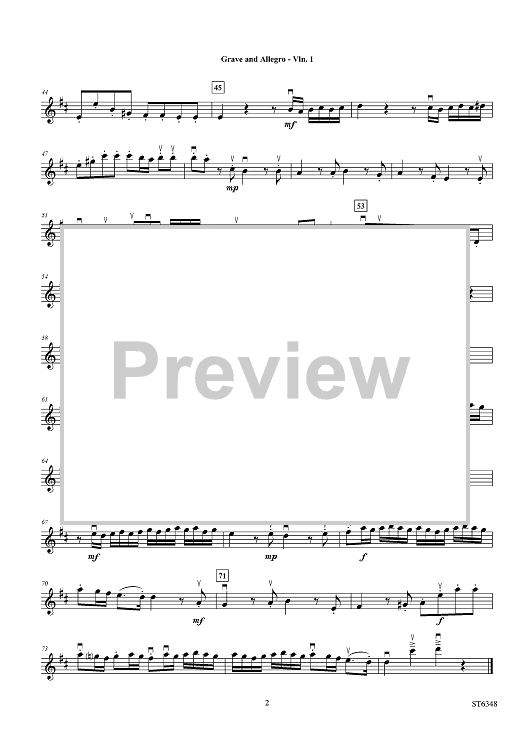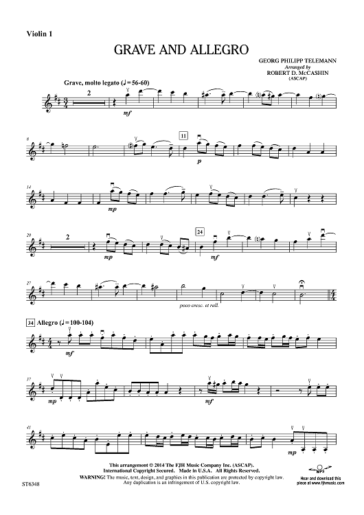 Digital Sheet Music for Grave and Allegro - Violin 1 by Georg Philipp Telemann, Robert D. McCashin scored for Orchestra; id:448163
