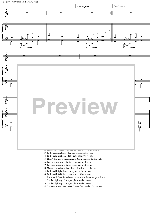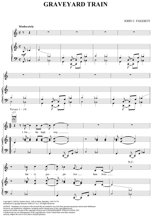 Digital Sheet Music for Graveyard Train by John Fogerty, Creedence Clearwater Revival scored for Piano/Vocal/Chords; id:269335