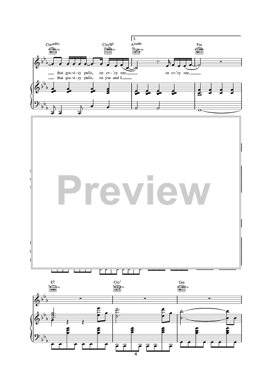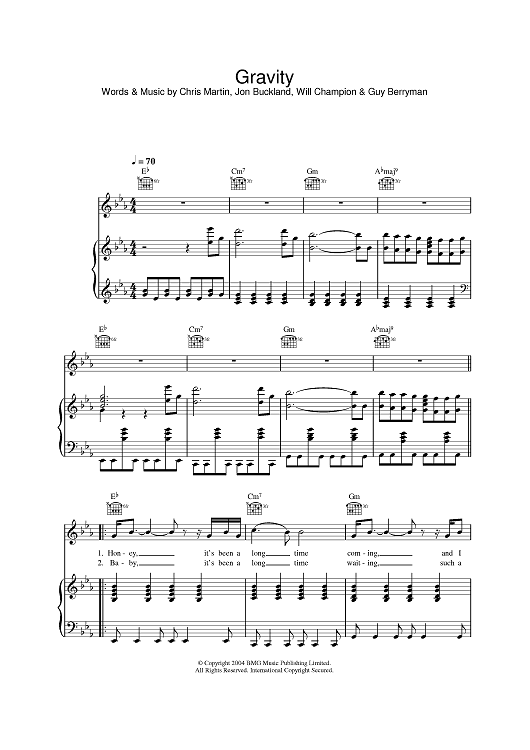 Digital Sheet Music for Gravity by Chris Martin, Embrace, Guy Berryman scored for Piano/Vocal/Chords; id:379378