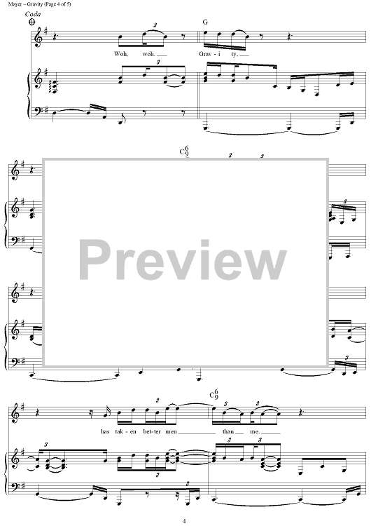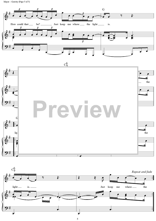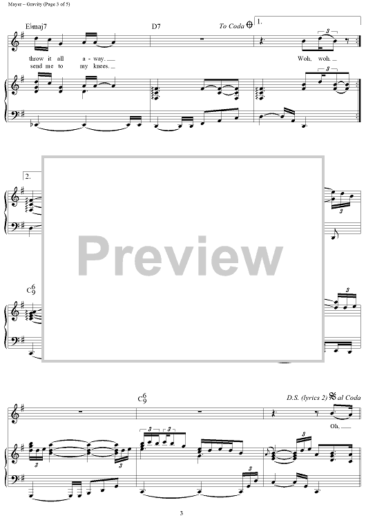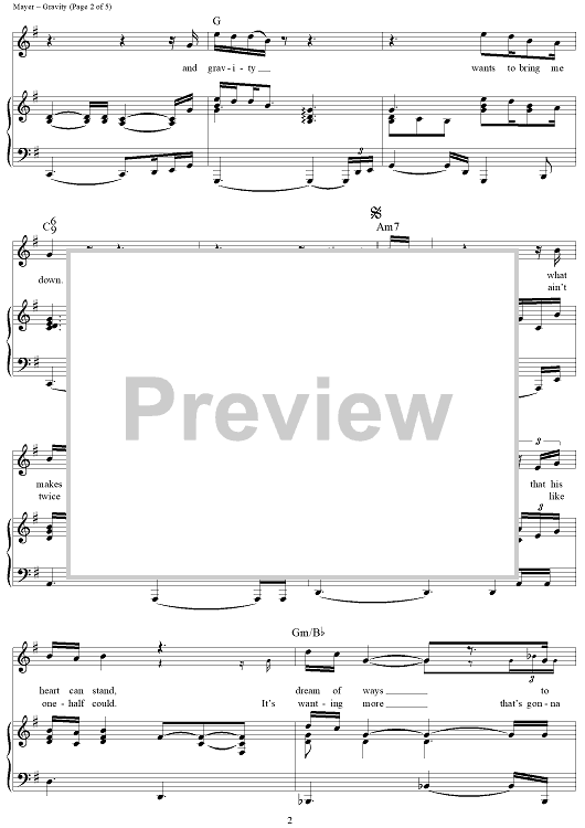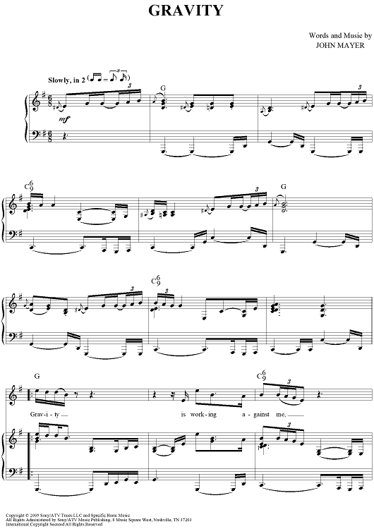 Digital Sheet Music for Gravity by John Mayer scored for Piano/Vocal/Chords; id:410126