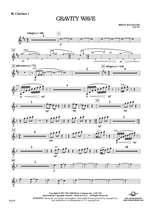 "Gravity Wave - Bb Clarinet 1" Sheet Music by Brian Balmages