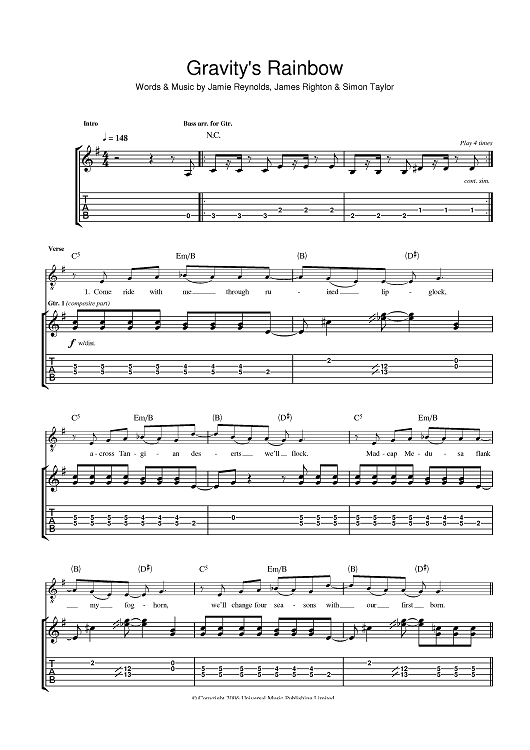 Digital Sheet Music for Gravity's Rainbow by Klaxons, Jamie Reynolds, James Righton, Simon Taylor scored for Guitar Tab; id:402275