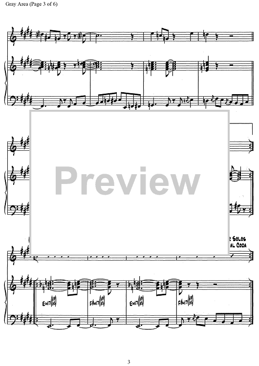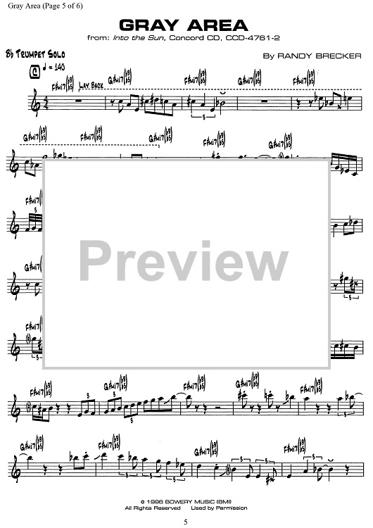 Digital Sheet Music for Gray Area by Randy Brecker scored for Bb Trumpet/Piano; id:501988