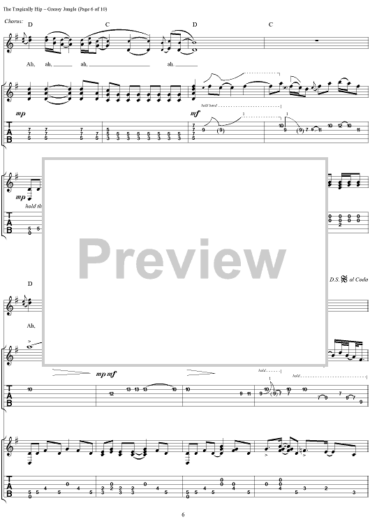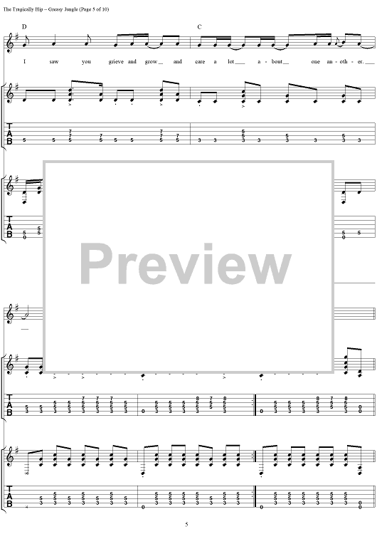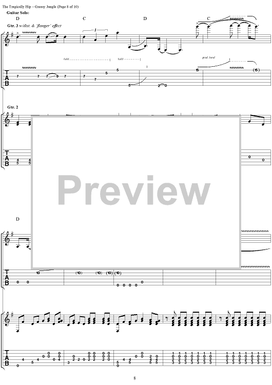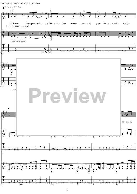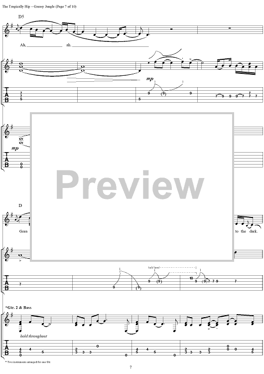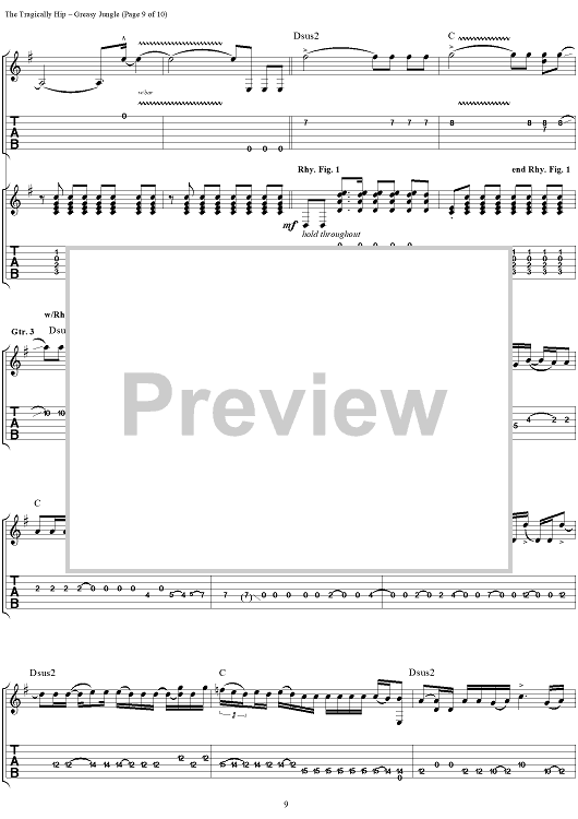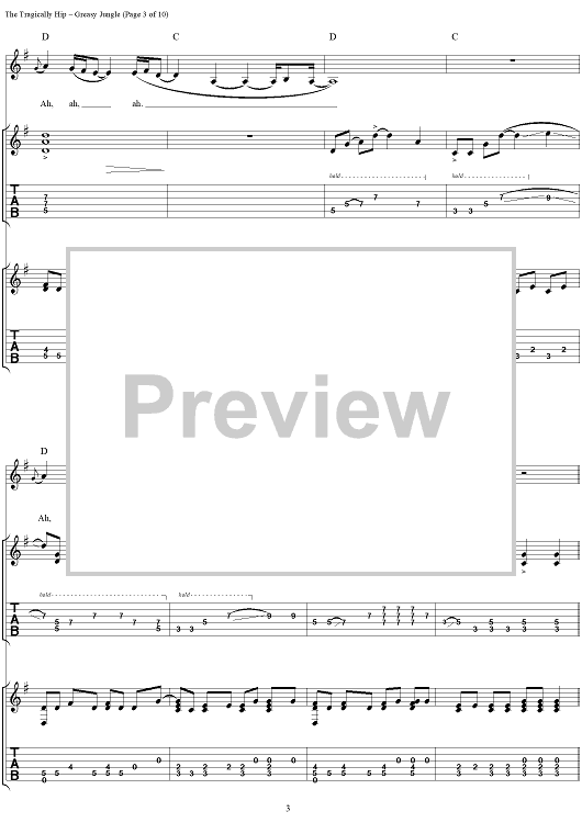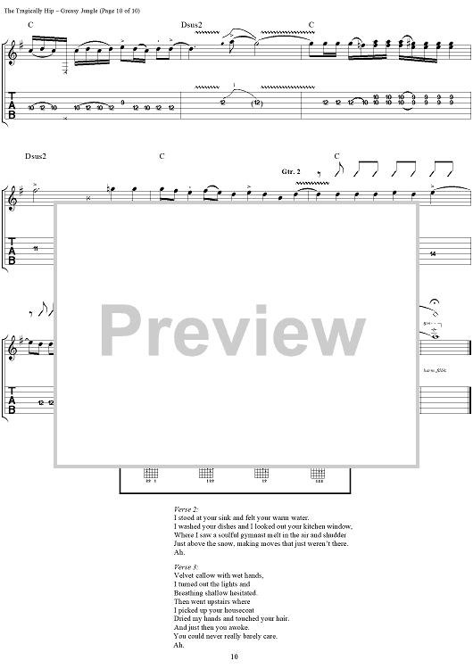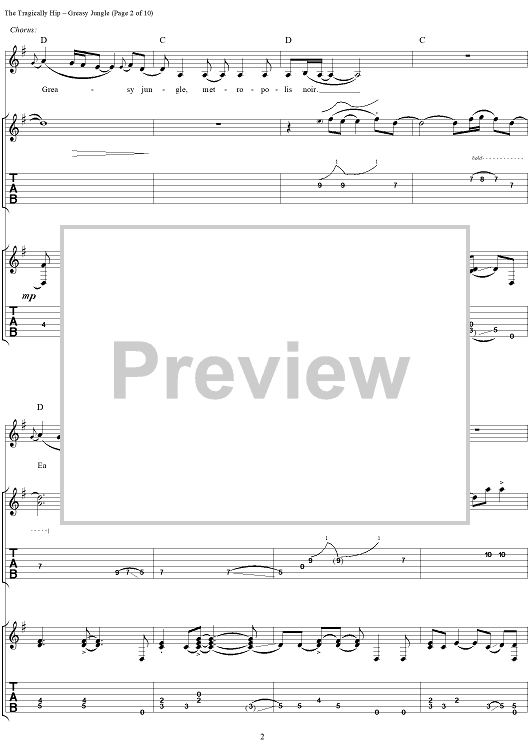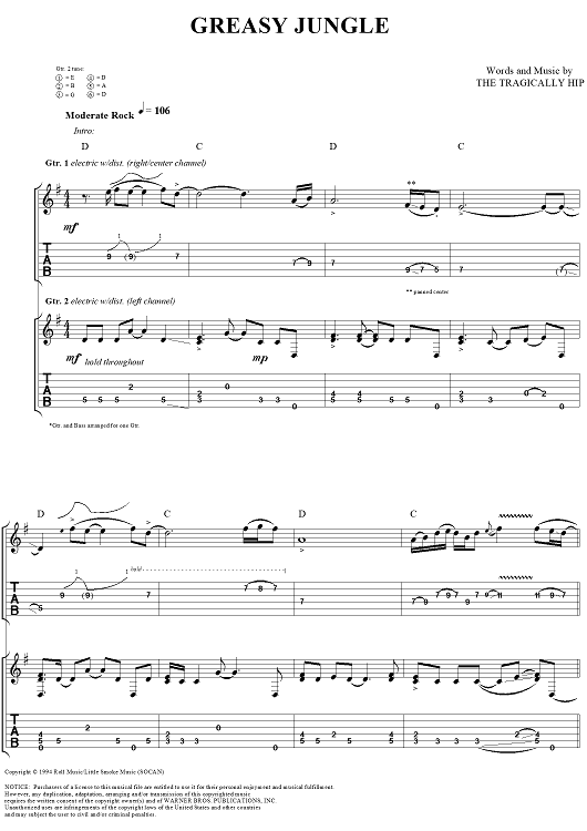 "Greasy Jungle" Sheet Music by The Tragically Hip