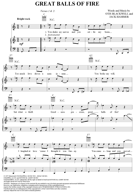 Digital Sheet Music for Great Balls Of Fire by Jack Hammer, Jerry Lee Lewis, John Davenport scored for Piano/Vocal/Chords; id:119708