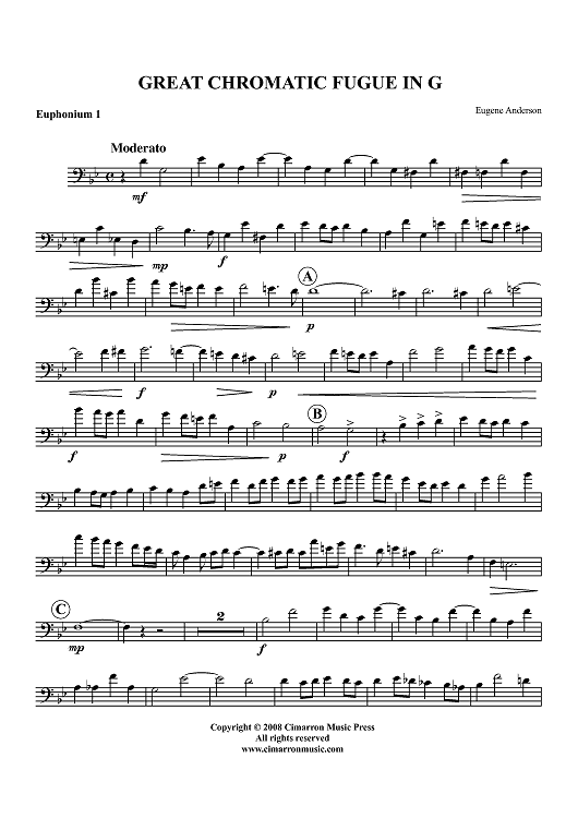 Digital Sheet Music for Great Chromatic Fugue in G - Euphonium 1 BC/TC by Eugene Anderson scored for Tuba Quartet; id:416870