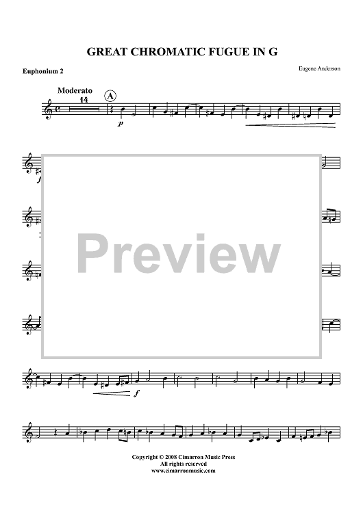"Great Chromatic Fugue in G - Euphonium 2 BC/TC" Sheet Music by Eugene Anderson