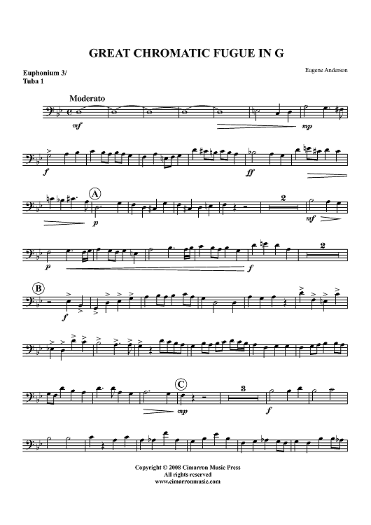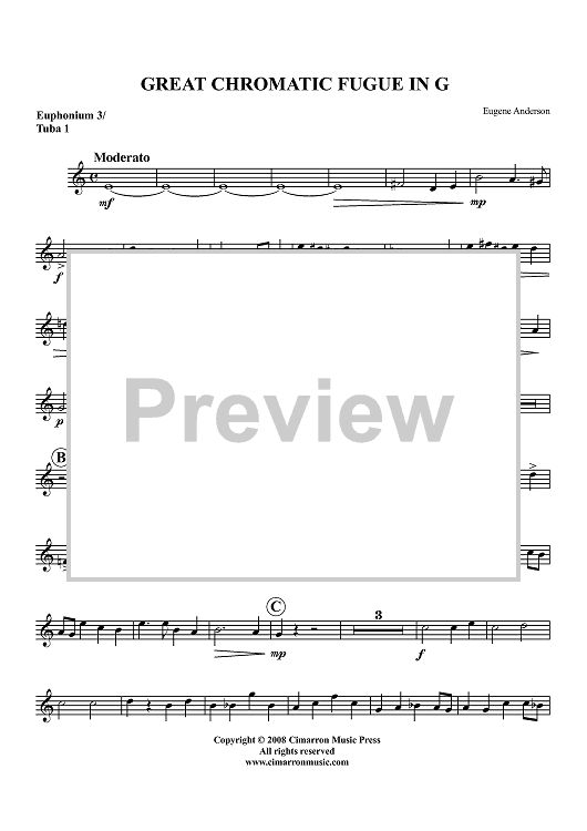 "Great Chromatic Fugue in G - Tuba 1 / Euphonium 3 BC/TC" Sheet Music by Eugene Anderson