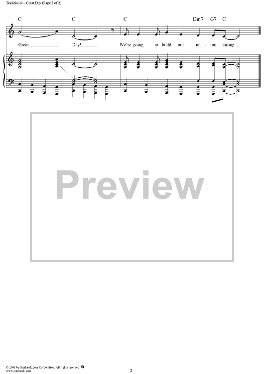 Digital Sheet Music for Great Day by Traditional scored for Piano/Vocal/Chords; id:261109