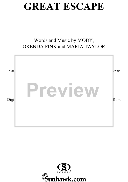 Digital Sheet Music for Great Escape by Moby, Orenda Fink, Maria Taylor scored for Piano/Vocal/Chords; id:293235