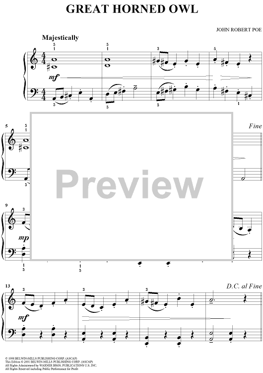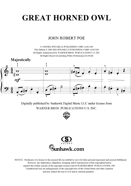 Digital Sheet Music for Great Horned Owl by John Robert Poe scored for Piano Solo; id:285968