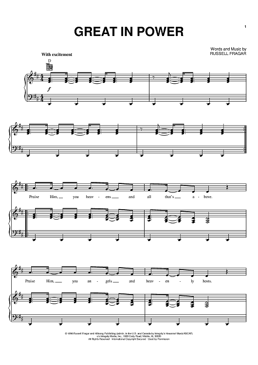 Digital Sheet Music for Great In Power by Russell Fragar scored for Piano/Vocal/Chords; id:379217