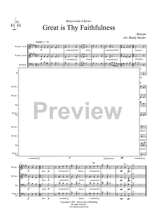 Digital Sheet Music for Great is Thy Faithfulness - Score by William M. Runyan, Randy Snyder scored for Brass Quartet; id:361051