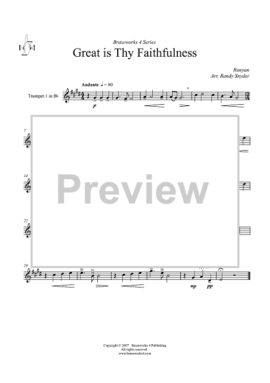 Digital Sheet Music for Great is Thy Faithfulness - Trumpet 1 in B-flat by William M. Runyan, Randy Snyder scored for Brass Quartet; id:361052