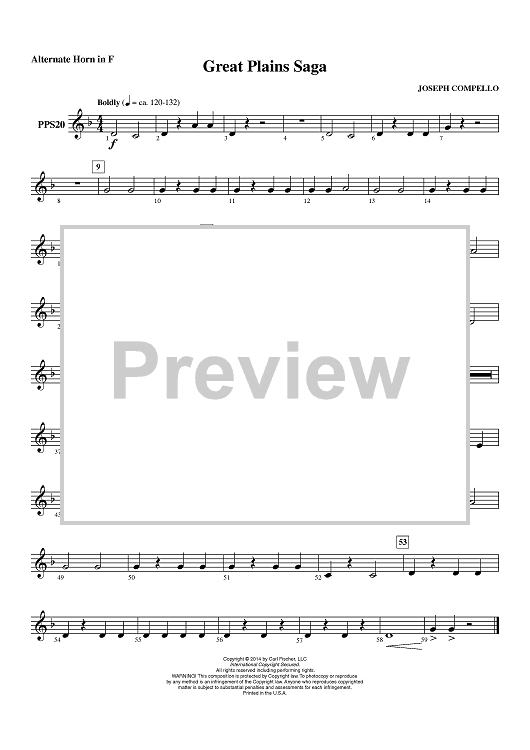 "Great Plains Saga - Alternate Horn" Sheet Music by Joseph Compello