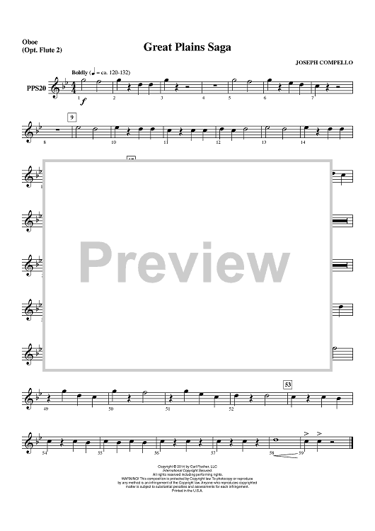 "Great Plains Saga - Oboe (Opt. Flute 2)" Sheet Music by Joseph Compello