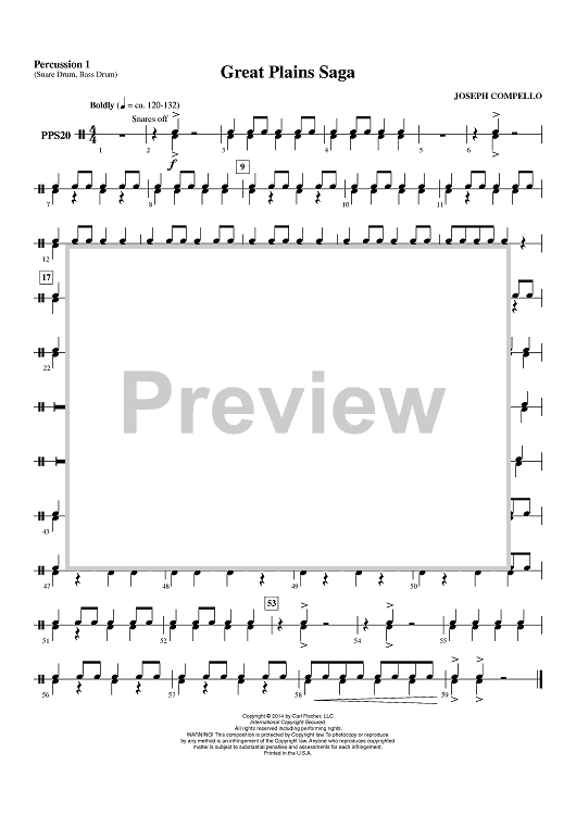 "Great Plains Saga - Percussion 1" Sheet Music by Joseph Compello