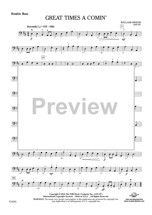 "Great Times A-Comin' - Double Bass" Sheet Music by William Owens